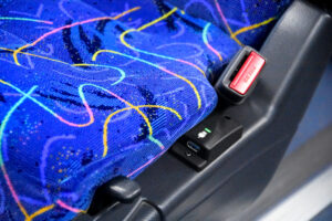 観光仕様のバス全席に増設いたしました。(一部取付不可の座席を除く)